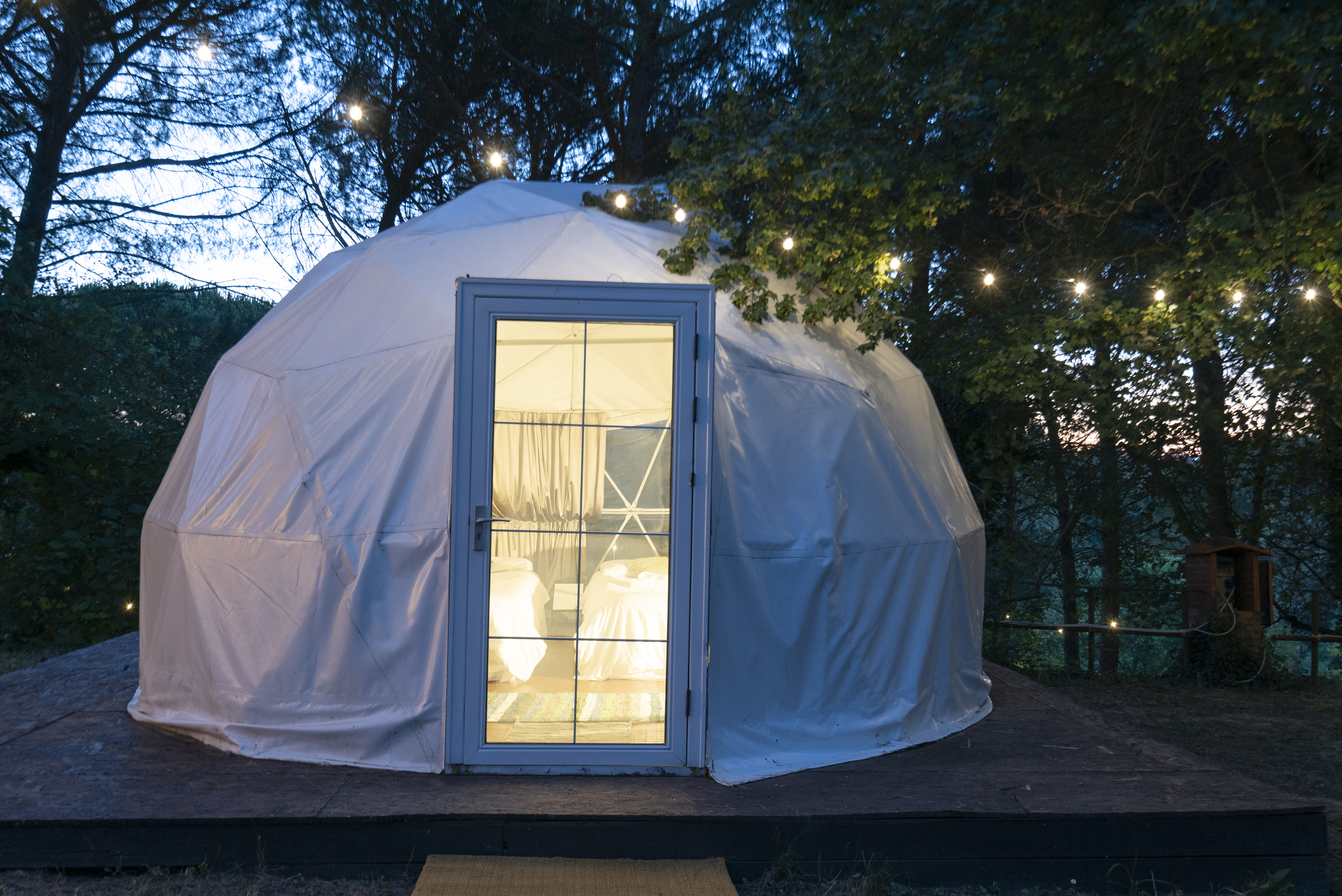 Le nostre tende glamping a cupola possono ospitare fino a 4 persone, 1 letto matrimoniale e 1 divano letto doppio e sono completamente attrezzate, compreso frigorifero con congelatore, barbecue, tenda con bagno privato, tavolo/sedie esterne e un grande ventilatore.